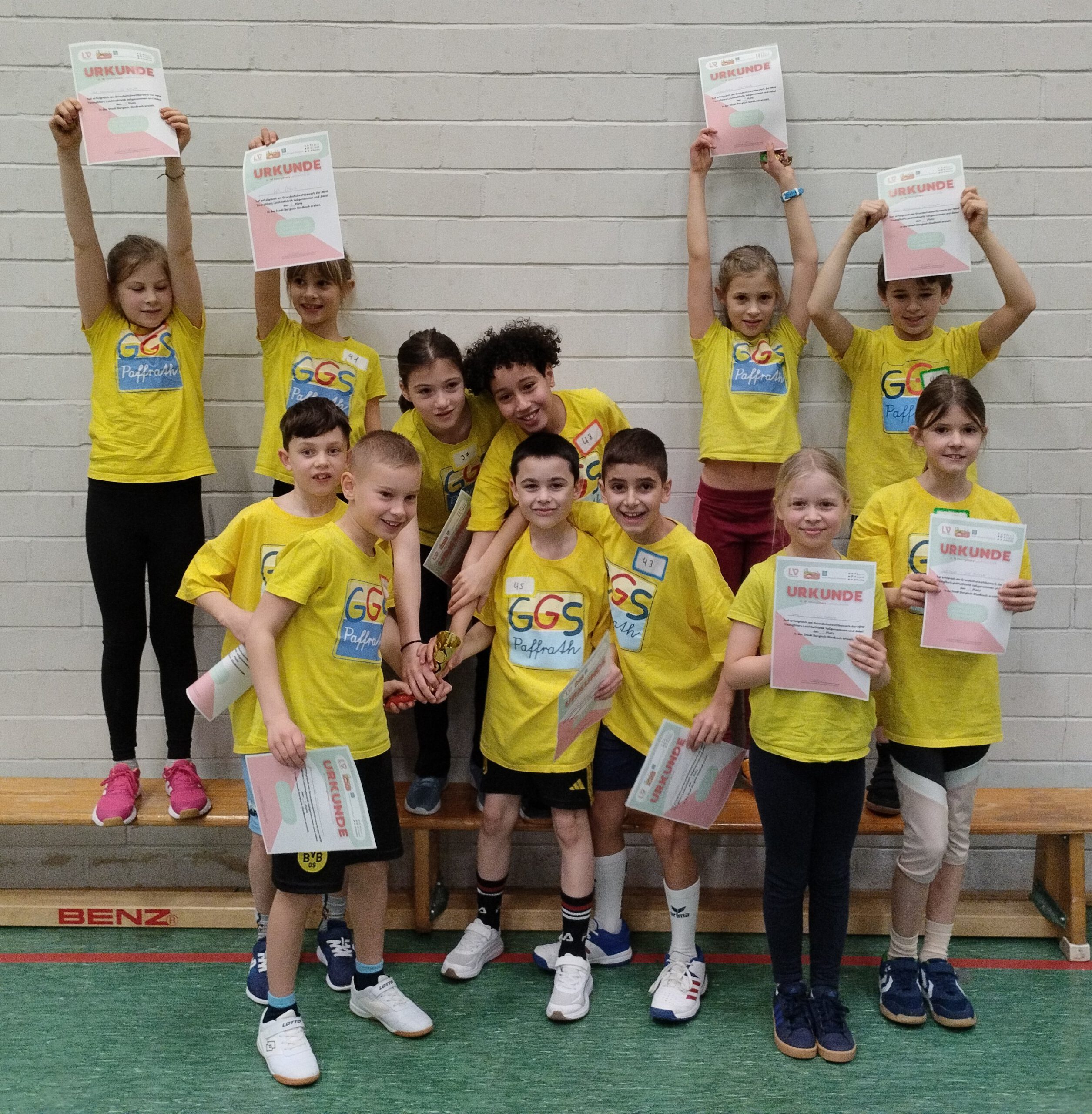 Am 2.2.206 hat der Auswahl der GGS Paffrath erfolgreich beim YoungStars-Turnier in der Turnhalle des Rheinischen Turnerbundes teilgenommen. Unter Anleitung von Frau Gaeta und Herrn Ponzelar haben die Kinder den 1. (ERSTEN!) Platz belegt. Herzlichen Glückwunsch!